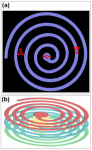 Spiral-inductor layout was created in CLEWIN 5.0 (WieWeb Software) running on Windows 10. After optimization of line/space dimensions, the designed CAD file in CIF format was uploaded to LW405B laser writer machine. The writer converted the CIF data into raster exposure commands at a base pixel size of 0.6 µm, producing the digital mask shown in Fig. 1(a).